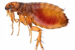 No, not the bassist for the Red Hot Chili Peppers. The common flea is dark colored and flattened from side to side with bristles pointing back. The flea has sucking mouthparts that are used for the drinking of blood of mammals and birds. The flea has a complete metamorphosis, from egg stage, to larval, pupal and adult stage. There are many types of fleas including the cat, dog, human and squirrel flea. Although the type of flea has a preferred host, that does not mean that they will avoid attacking another type of host. Most fleas prefer warmth rather than cold and will abandon a host when it dies. This behavior is a possibility for the cause of bubonic plague, as the flea left the host and found its way to a human for a new host. Fleas are attracted to movement. Often a deserted house is entered and the vibrations of the movement that are made cause the fleas to come out of their hiding places and attack the intruder.