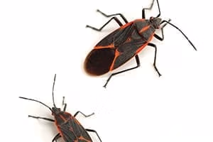 The boxelder bug is black with orange or red markings. During the fall season, they will leave their host tree and a structure to over winter. They do not sting and will seldom bite. The best time to control the boxelder bug is when they are sunning themselves in the late fall and early springtime. If one gets squashed, they will leave behind a dye that stains clothing and carpet. They love the outdoors in good weather, hanging out in parks or gardens, meadows or forests.