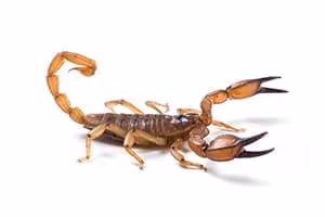 Scorpions have eight legs, a pair of pinchers, mouth pinchers and a tail with a stinger. The sting of a scorpion is somewhat non-venomous and in most cases, is no more poisonous than a wasp sting, although there are some species that are particularly more poisonous than others. Scorpions will sting if crushed or if they are disturbed. Outside you can find the scorpion under rocks, logs and loose bark. Scorpions are most active at night. They are attracted to moist areas. Methods of control include removal of unnecessary rocks, logs, trash or debris. Also, make sure the house is properly sealed up.