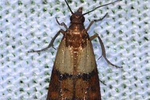 Eggs of the moth are laid wherever the food for the larva occurs and are usually fastened to the food source. Infestation can be controlled by pesticide application, discarding the infested product and cleaning out the food storage area. The moths will feed upon grains, dried fruits, birdseed and old dog food. Some moths leave an odor and contaminate infested grains.